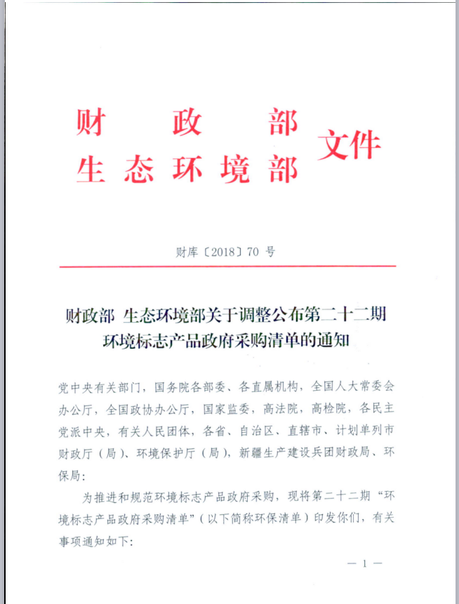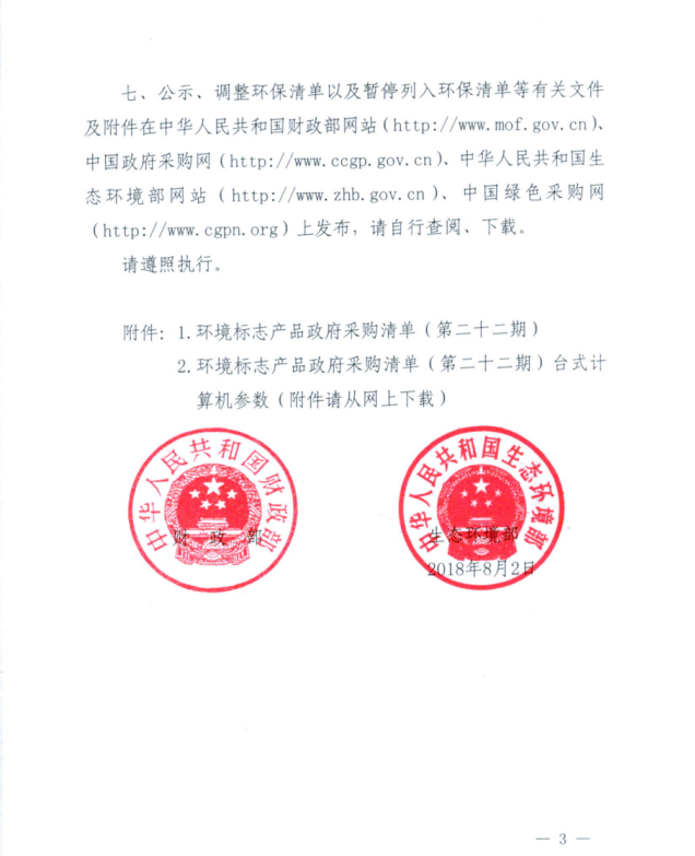 财政部 生态环境部关于调整公布第二十二期环境标志产品政府采购清单的通知