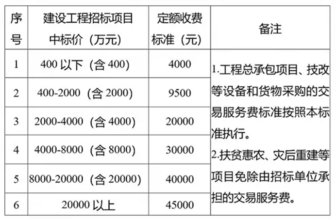 建设工程交易服务费由工程项目招标方和中标方各承担50%,最高收费标准见下表,各地可根据当地经济社会发展情况适当下浮。